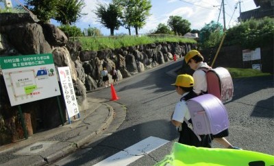 横断歩道では地域の方々や送ってこられた保護者の方に止まっていただき、
