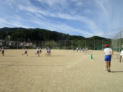 今日も陸上記録会に向けて練習し、6年生はさわやかな汗をかいていました。
