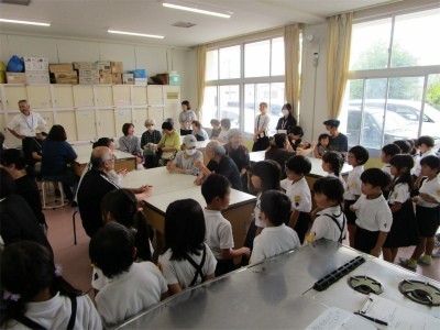 本日はキミマの日でしたので、委員の皆様も地域の方と一緒に5年生からのふるまいと1年生の校歌のプレゼントとお知らせを聞いていただきました。