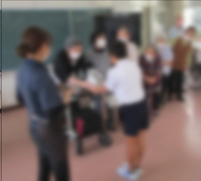 本日、デイサービス「生きがい工房」の皆さんが来校され、雑巾や、スポンジを寄付してくださいました。