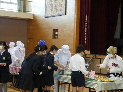 6年生は、最高学年ということでいろいろな場面で活躍してくれています。また、下級生のお世話をしてくれたり学校代表としての仕事をしてくれたりしています。そのような6年生に卒業までに素敵な思い出を1つでも増やしてほしいということで、給食センターの方がバイキング給食を用意してくれました。普段と違う雰囲気の中、談笑しながらおかわりもし、完食しました。残り5か月です。6年生の皆さん、さらに良い思い出を増やしてくださいね。