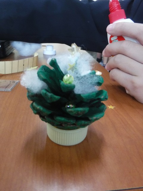 下書きをもとにビーズやわたをつけ、かわいくかざりつけをしました。