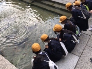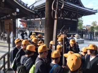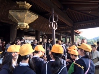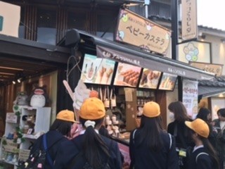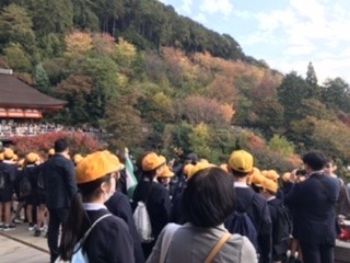 6年生乃本日のお楽しみは清水寺散策。清水の舞台から綺麗な紅葉が見えました。音羽の滝の水では、水を触って願い事を唱えました。その後の散策では、念願の買いたい物を買ったり、お土産を選んだり、アイスクリームなどを食べたりと本当に楽しみました。