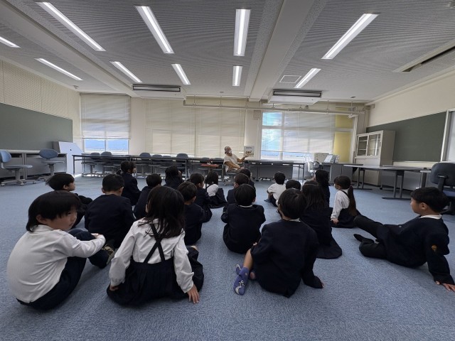 2時間目に1A、3時間目に1Bが読み聞かせをしてもらいました。