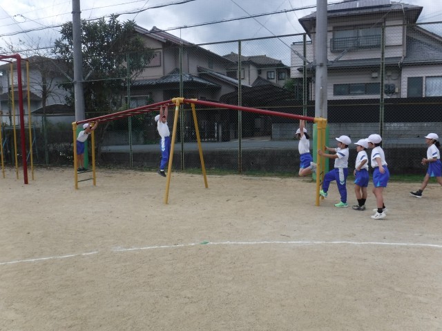 苦手な子には『手に力を入れるといいよ』とアドバイスをしたり、『がんばれ!!』と応援している子もいました。