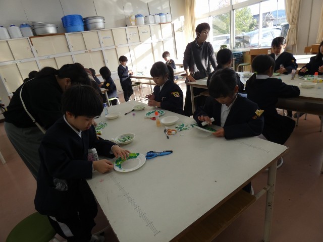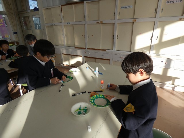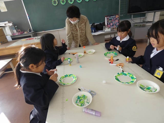 クリスマスまで1か月を切りました。ふれあいルームでは折り紙をちぎり、リースづくりをしました。細かくちぎる人、縦長にちぎる人などいましたが、どんなふうにちぎっても趣あるリースとなっています。