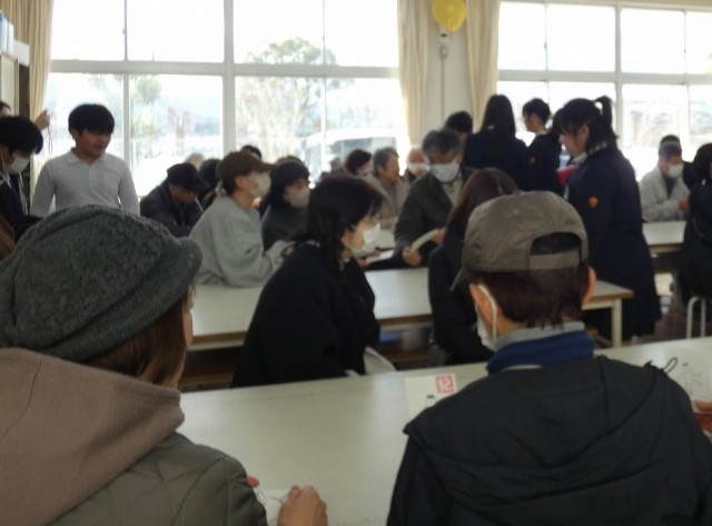 本日キミマートを開催したくさんの地域の方々に来ていただきました。今回は6年生が、6年間見守ってくださった感謝の気持ちを込めて、墨で描いた絵手紙を手渡ししました。また、畑で育てた大根を使ったおでんを若草学級の子どもたちが作り、味わっていただきました。