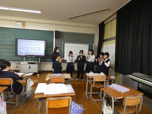 4年生は、合奏の練習をしていました。音楽会を経ているので、グループで上手に音合わせや練習を行っていました。きれいな音が響いていました。