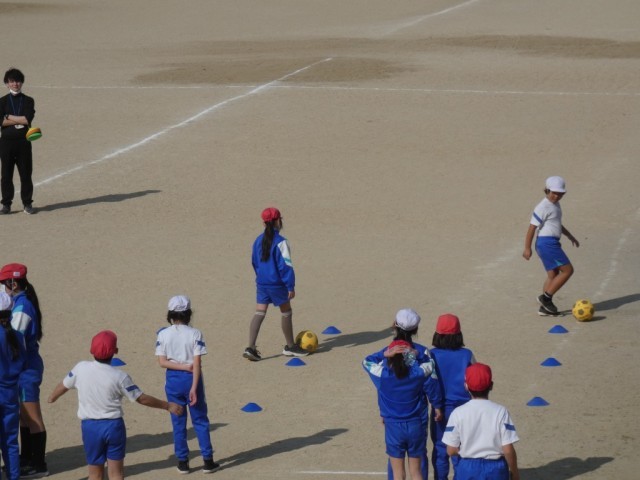 4年生は、サッカーです。寒い日ですが、ドリブル練習もして、笑顔いっぱいでした。