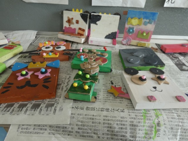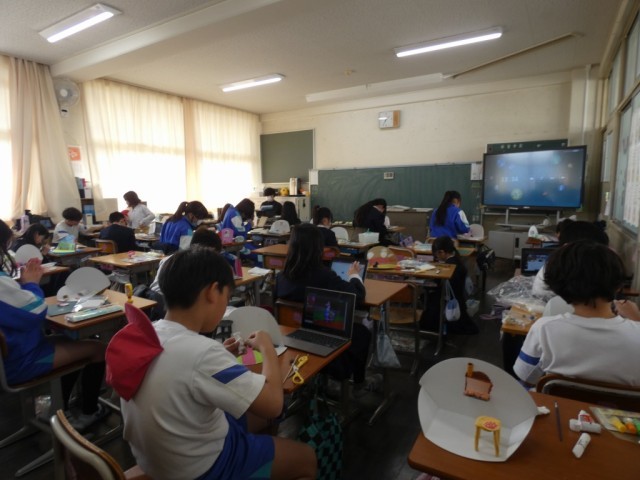 3年生も落ち着いて学習しています。工作も仕上がっていました。工夫していますね。