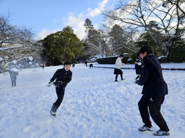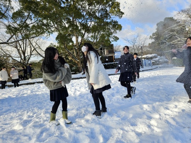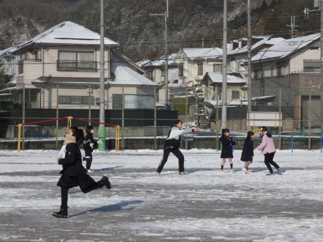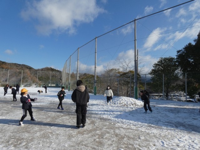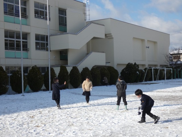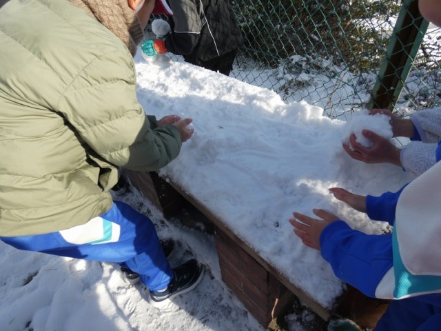 この地方では1年に数回しかない雪の日でした。早速、雪だるまや雪合戦をして雪遊びを楽しみました。今日の雪はふわふわで、固めるのが難しかったです。でも雪を目の前にした子どもたちは、いつもに増して、笑顔いっぱいでした。