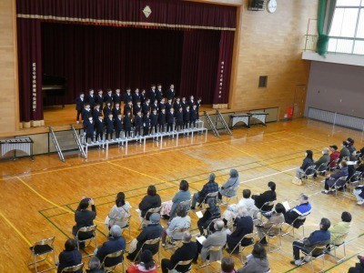 日頃から児童の学びにご協力いただいた方々に、1年間の感謝の気持ちを伝える「キミマ大感謝祭」を開催しました。児童は、この日のために練習を重ね、感謝の気持ちを届けました。最後は6年生による歌。その後、餅まきを楽しんでいただきました。また、小学校で作ったカレンダーもプレゼントしました。集まっていただいた方同士で、また、児童ともお話するなど、温かい雰囲気で過ごせましたこと嬉しく思っております。