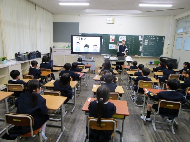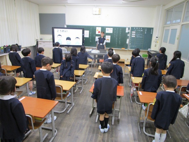 また、授業の始まりと終わりの挨拶も教えてもらい、みんなで練習してみました。