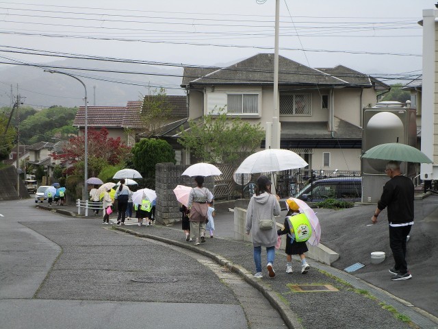 紀見小学校では登下校の見守りのお願いをしてきていました。