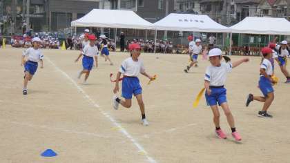運動会予行演習 3年生 パート1 公開日 2024/05/22 更新日 2024/05/22 3年生 今日は、運動会予行演習でした! 練習の成果が十分に発揮できた1日でした♪ 学年種目しっぽとりの様子です。 一人一人頑張って動き、しっぽを取り合い姿が素敵でした♪ いいね(1)