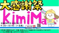 キミマ大感謝祭のご案内です。3月10日(火)9:35からキミマ大感謝祭を開催します。日頃から紀見小学校の児童の学びにご協力いただいた方々に、感謝を伝える会です。お待ちしております。