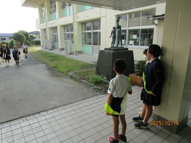 10月15日(水) 保健委員会 保健委員会があいさつ運動をしました。3連休明けでしたが、明るく元気な声であいさつをしていました。気持ちのいいあいさつは、明るい気持ちになりますね。 これからも継続して元...