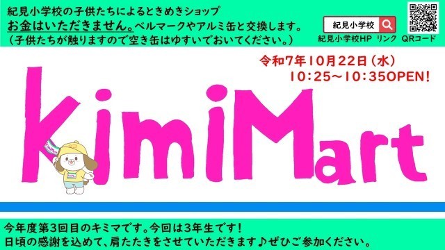 10月22日(水)10:25頃から第3回キミマートを開催します!