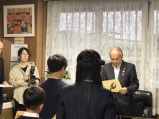 橋本市図書館を使った調べる学習コンクールで、本校6年生が入賞し、橋本市長から表彰していただきました。何年にもわたって研究を重ねた素晴らしい作品が出来上がっていました。おめでとうございます。