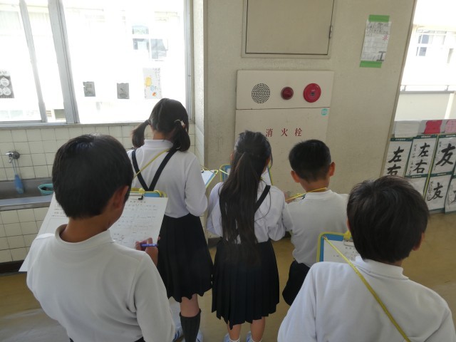 3時間目の社会の時間に、学校にある消防設備の探索を行いました。各教室に火災報知器があることや、各階に消火器や消火栓があることを見つけ、火事が起こった時のことをきちんと想定されいることに気づくことができ...