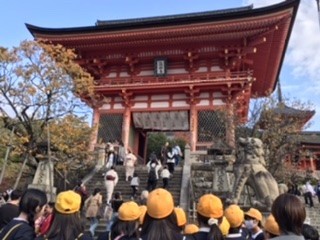 6年生乃本日のお楽しみは清水寺散策。清水の舞台から綺麗な紅葉が見えました。音羽の滝の水では、水を触って願い事を唱えました。その後の散策では、念願の買いたい物を買ったり、お土産を選んだり、アイスクリー...