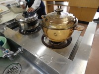 お鍋を使ってご飯をたき、お味噌汁も作りました。美味しい出汁も取りました。ご飯も炊きあがりの様子がよく見え、おいしく仕上がりました。家でも作ってくださいね。