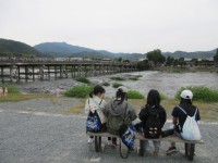 予定よりも少し早めに嵐山に到着したので、みんなで渡月橋を渡り、桂川の河原で自由タ...