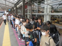 待ちに待った修学旅行!校長先生、教頭先生などからお話をいただき、出発しました。