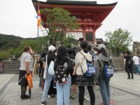 清水寺では、仁王門で集合写真を撮り、弁慶の大錫杖をみんなで持ち上げようとチャレン...