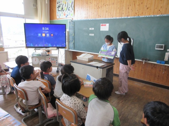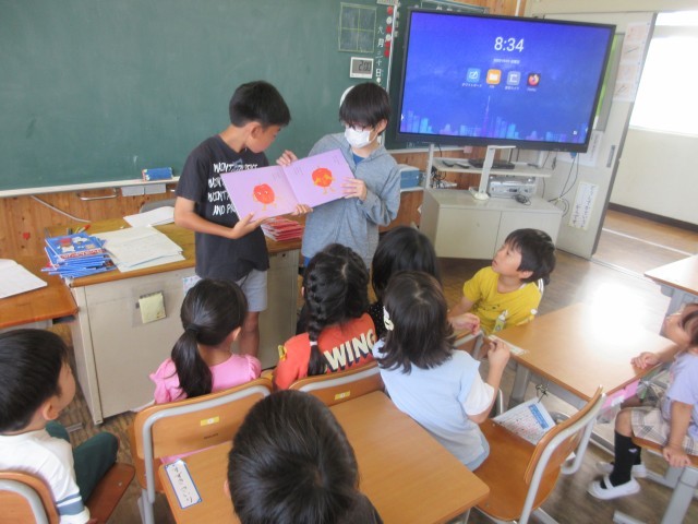 一学期最後の読み聞かせ! 公開日 2025/10/01 更新日 2025/10/01 学校紹介 今日は1学期図書委員さんによる最後の読み聞かせでした。高学年のお兄さん、お姉さんが本を持って教室に入るだけで、「今日は読み聞かせあるんや!」と喜ぶ声が。低学年の子どもたちにとって、朝学の読み聞かせが楽しみなこととして定着してくれていったら嬉しいです。 いいね(2) 学校紹介