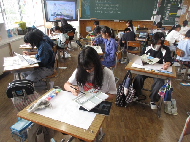 今週の6年生は、夏休み明けに作成した「はにわ」が完成して、できばえを確認して感想を書いたり、図画工作「わたしの大切な風景」をじっくりと描いたり、理科「リトマス紙」を使った実験を行ったりしました。