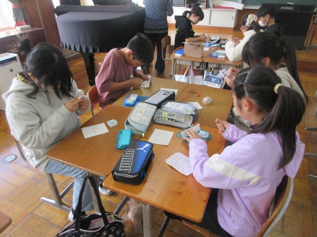 今週の6年生は、外国語の授業でハロウィンレッスンをして楽しんだり、家庭科の裁縫で自分の顔を作ったりしました。