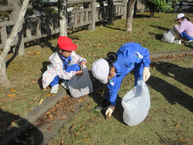1~4年生は、3号公園の落ち葉集め、5・6年は、道掃除をしました。