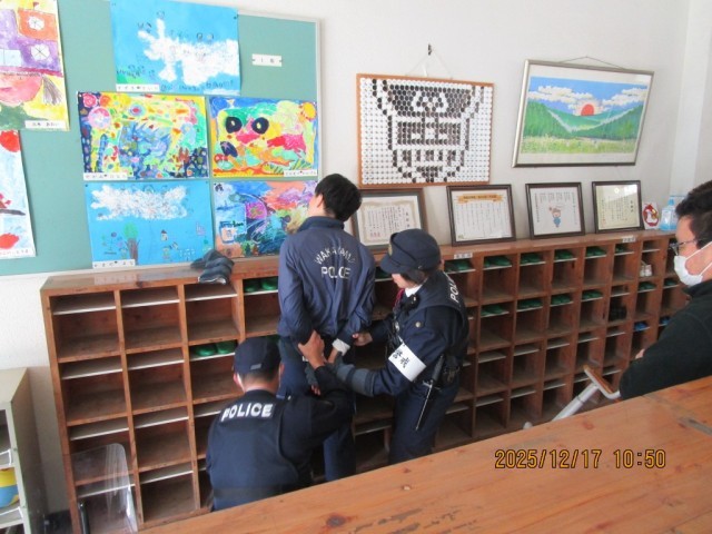 昨日、3時間目に橋本警察、教育支援センターの方々にご協力いただき、避難訓練(不審者対応)を行いました。