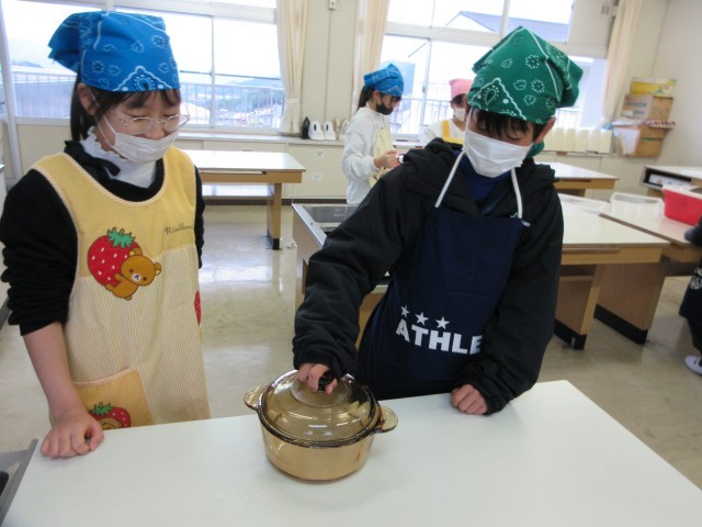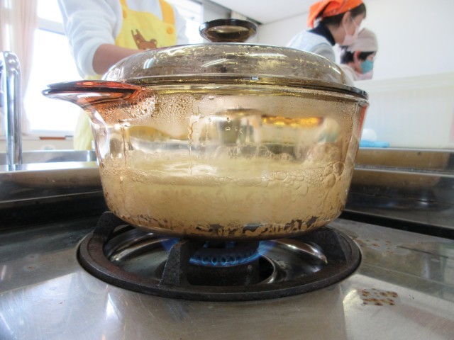 自分たちが芋谷の棚田で「田植え」「稲刈り」をしたお米を調理して食べました。