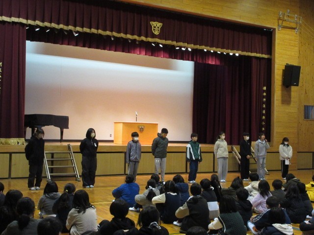集会では、代表委員会のメンバーから、新たな年を迎え、よりよい学校生活を送るための抱負の発表がありました。