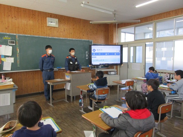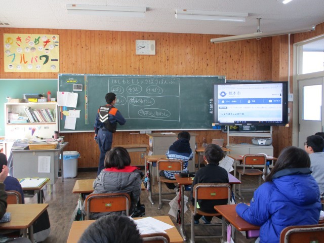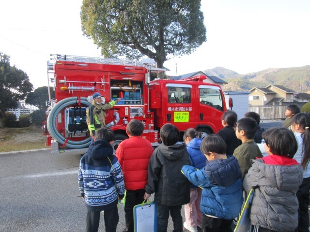 今週は、水曜日に橋本北消防署から出前授業に来てもらいました。はじめに消防署のことや仕事の内容などのお話を聞かせてもらい、そのあと外に出て消防車を見ながら話を聞きました。たくさんの道具を見て目をキラキラさせていました。