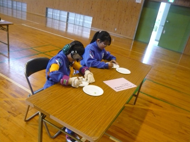 今週の4年生は橋本市社会福祉協議会の方に来ていただき、福祉体験を行いました。
