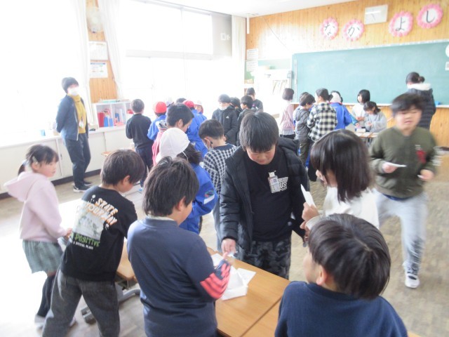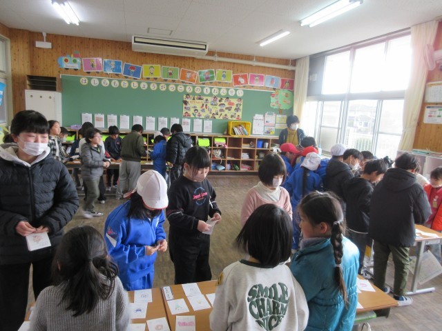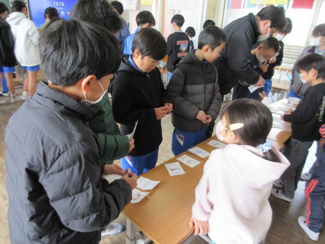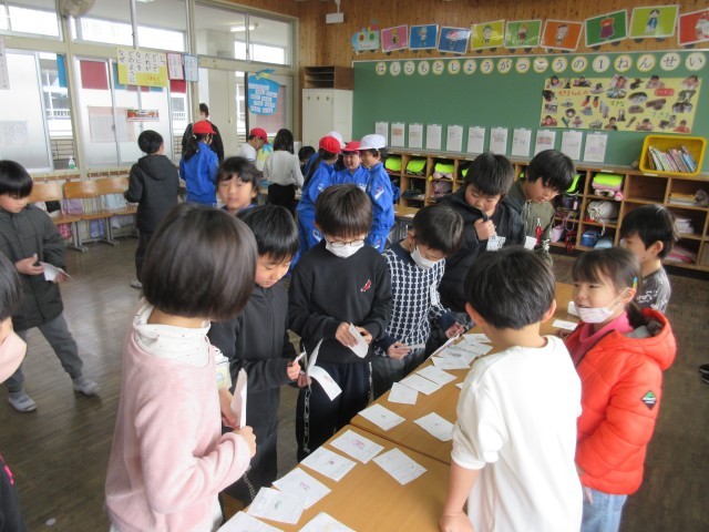 お店やさん 公開日 2026/02/09 更新日 2026/02/06 1年生 国語の「ものの名まえ」で、たくさんの言葉を集める学習をしました。そして今日の休み時間、お兄さん、お姉さんを招待して、お店やさんを開きました!たくさんお客さんが来てくれて大忙しの様子でしたが、閉店後の1年生はすごく達成感を得ているようでした。2年生~6年生のみなさんも、店員さんに優しい声かけをたくさんしてくれてありがとうございました。 +6 いいね(1) 1年生