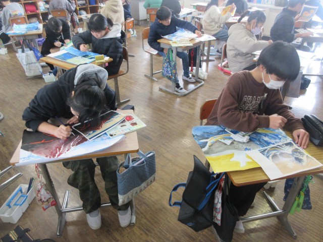 図画工作科では、世界の名画を仕上げました。細部までこだわって描くことができました。