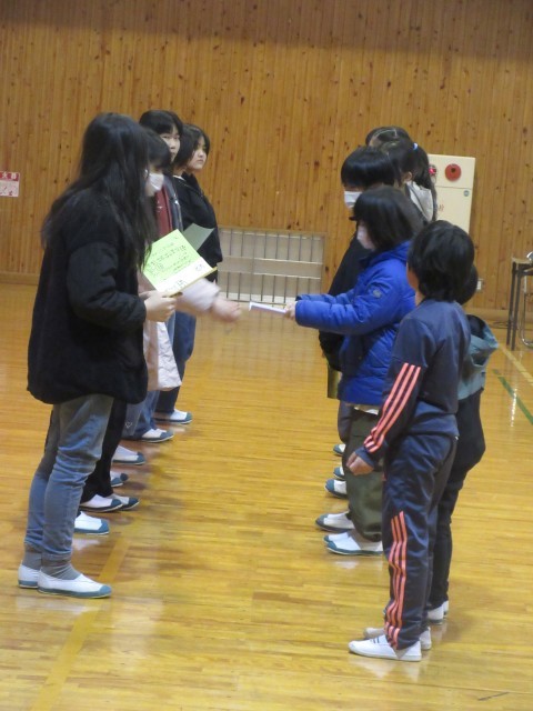 一年間ハンカチ・はなかみ・爪きりをパーフェクトにできたお友達も保健委員会から表彰状をもらいました。