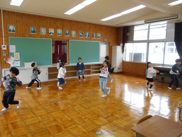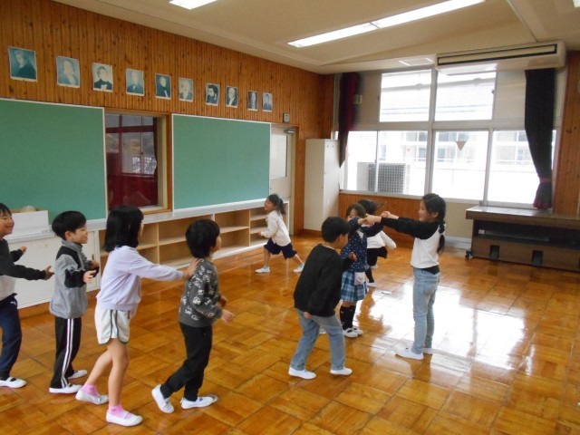 音楽の授業では、メッセージといういろんな国の挨拶の入った歌を手話を使いながら歌ったり、ロンドン橋や子犬のビンゴの歌を体を動かしながら、楽しく取り組みました。