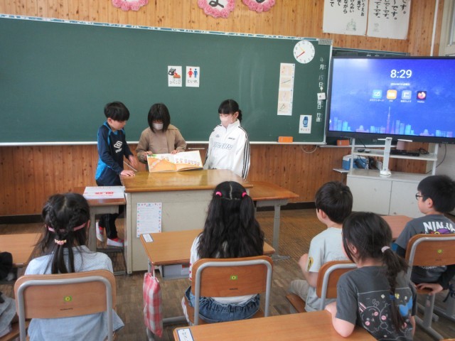 今年度はじめの読み聞かせ! 公開日 2026/04/15 更新日 2026/04/15 学校紹介 令和8年度1学期図書委員会のみなさんによる読み聞かせがありました!図書委員のみなさんの中にも、少し緊張している様子が見られましたが、1,2,3年生のみんなに「前に来ていいよ。」と優しく声をかけて始めてくれました。今年はどんな本に出あえるでしょうか。ぜひいろんな本を手にとってみてくださいね。 いいね(0) 学校紹介