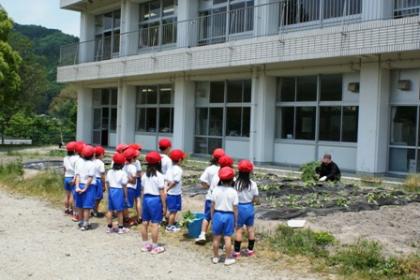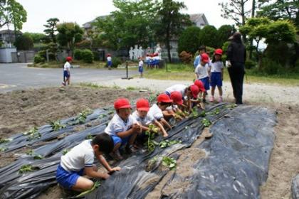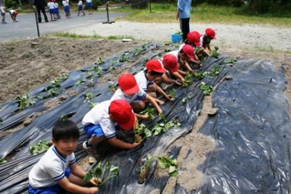 さつまいも苗植え 公開日 2012/05/23 更新日 2012/05/23 1年生 5月23日(水)各学年でサツマイモの苗植えを行いました。学級園にマルチシートをひいて丁寧に植え付けました。収穫が楽しみです。 いいね(0)