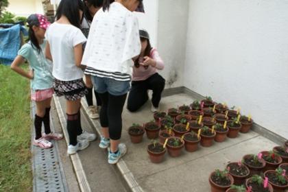 菊作り 公開日 2012/05/29 更新日 2012/05/29 5年生 5月29日(火)本校の菊作りは、昭和38年から始まりました。今日も柱本の矢野さんのご指導をうけ、5年生が菊苗を鉢に植え替えました。7月には、大鉢に植え替え、秋には、見事な花をつけることでしょう。 いいね(0)