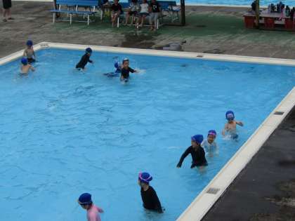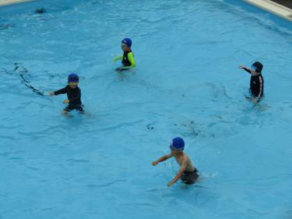 1年生 プール開き! 公開日 2023/06/21 更新日 2023/06/21 1年生 3時間めにプールに入りました。入ると少し冷たく感じましたが、プールの底のイルカさんにタッチしたり、じゃんけん列車をしたりして楽しみました。 いいね(0)