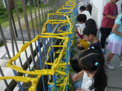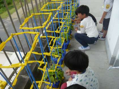1年生 あさがおの支柱を立てました。 公開日 2023/06/22 更新日 2023/06/22 1年生 ベランダで育てているあさがおのつるが伸びてきたので、支柱を立て、肥料もあげました。 ぐんぐん伸びますように! いいね(0)