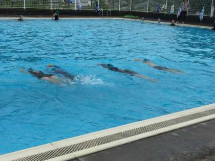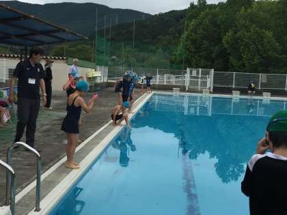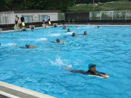 水泳2!その1 公開日 2023/06/22 更新日 2023/06/22 3年生 午後から水温が基準値を上回り、3、4年生は水泳の授業をおこないました。 けのびや8の字浮きをしたり、ビート板を使って25メートルバタ足をしたりしました。 少し肌寒かったですが、子どもたちは元気に泳いでいました。 いいね(0)