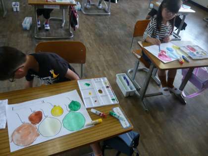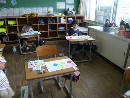 1年生 初めて絵の具を使いました。 公開日 2023/06/26 更新日 2023/06/26 1年生 3,4時間めに初めて絵の具を使いました。それぞれの名前や使い方をしっかり聞き、自分で選んだ3色で風船の色をぬりました。片付けもとても上手にできました。 いいね(0)