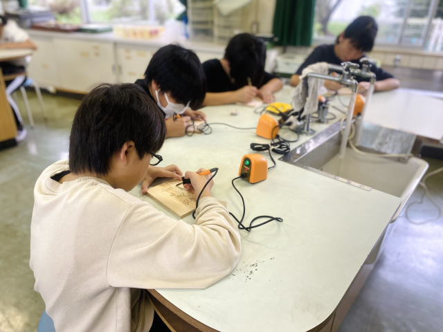 先週の金曜日は、緑育推進事業の事後学習で、間伐材を使用したウッドバーニングをしました。